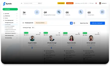 See how Synclo can help you manage all of your employee data and operations in one place, no matter your business's size.