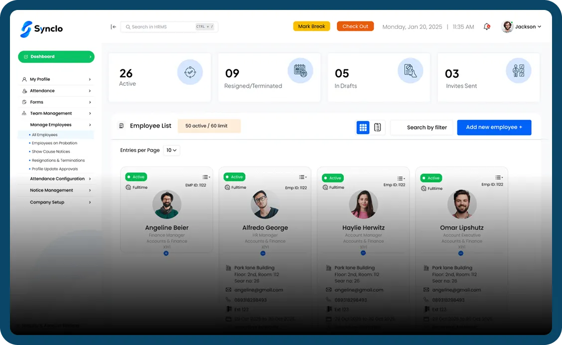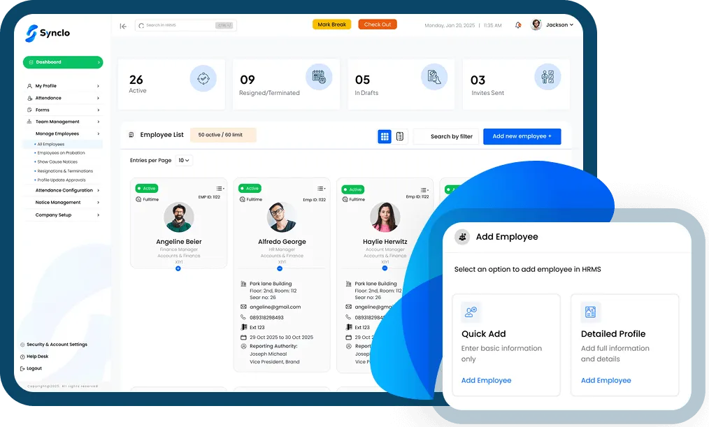 See how Synclo can help you manage all of your employee data and operations in one place, no matter your business's size.
